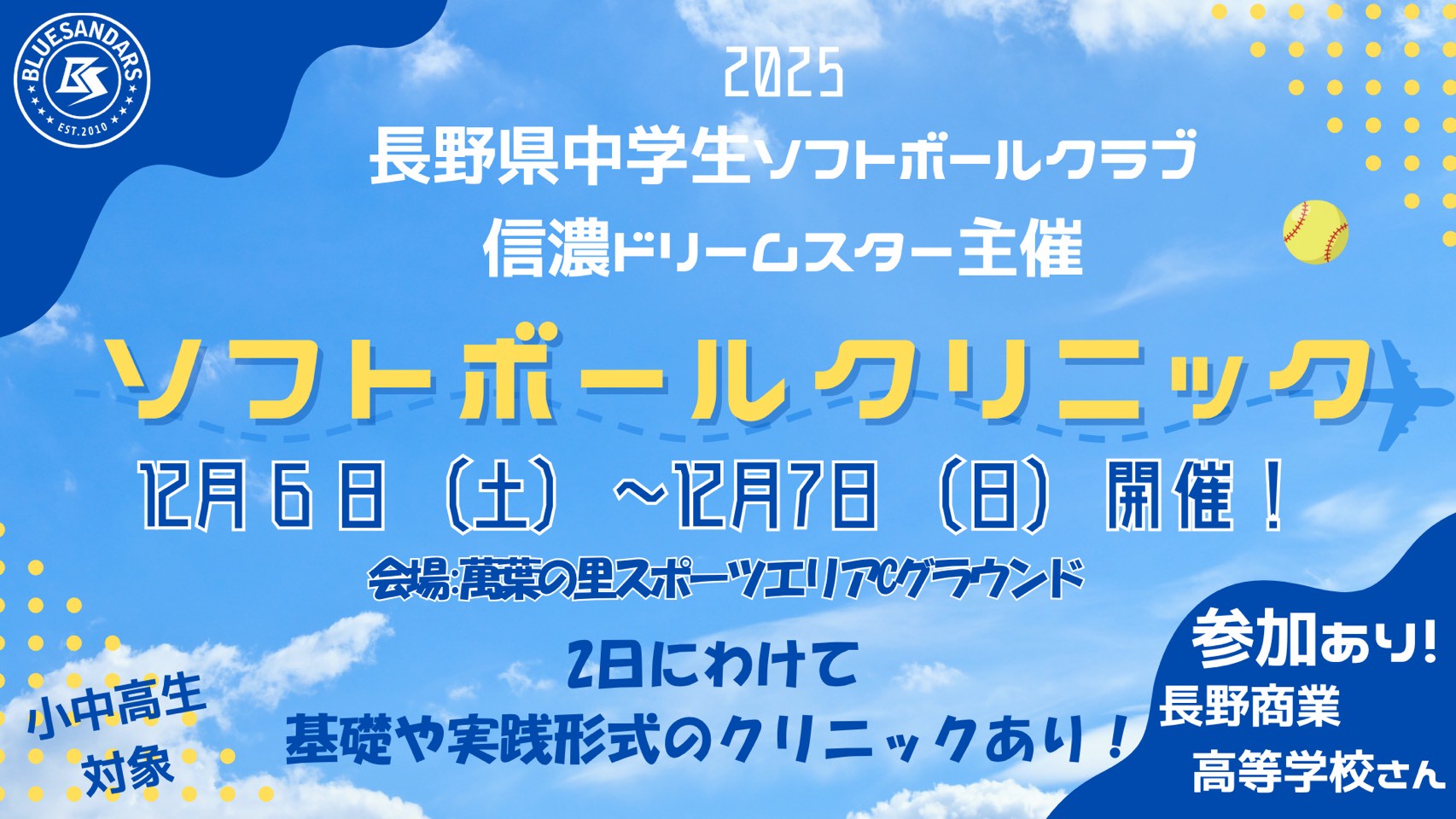 女子ソフトボール体験会開催のお知らせ